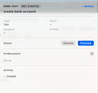 One design choice here is worth highlighting. Most ticketing systems require users to manually select the next workflow state from a dropdown menu. This system does something simpler. Instead of choosing states, you just press Promote. The system automatically moves the ticket to the next step in the workflow.