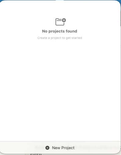 In this case there were none yet, so the UI simply showed an empty project list.