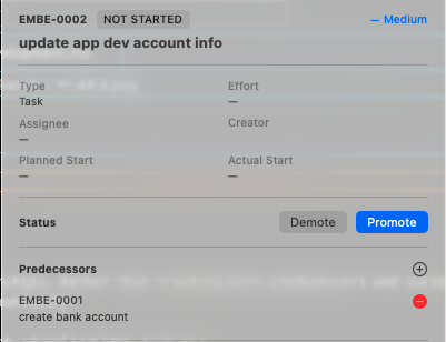 Project scheduling is handled through predecessor relationships. Rather than tracking both predecessors and successors, the system only stores predecessors. Successor relationships can be derived automatically.